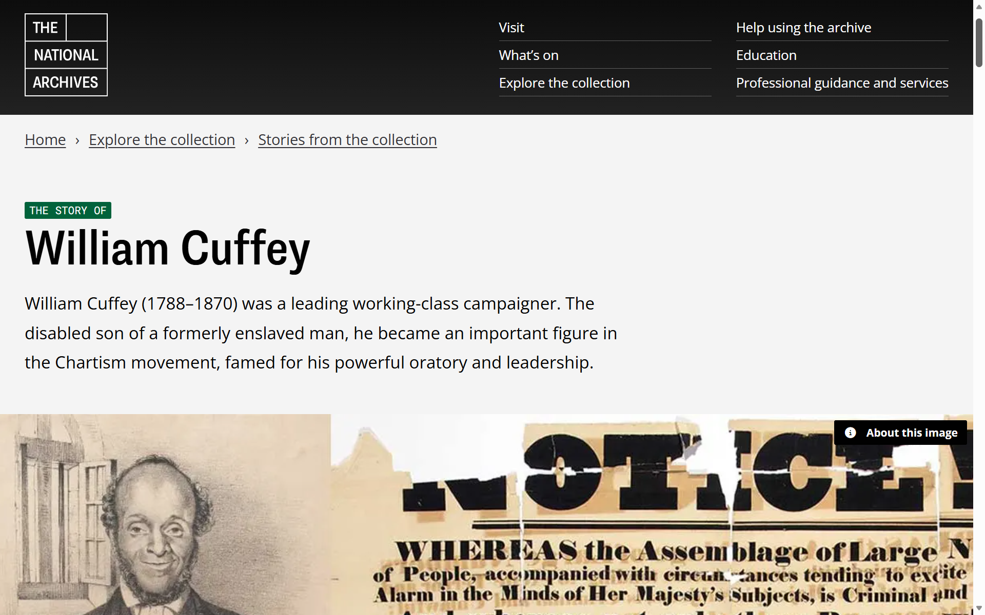 The National Archives holds a number of records on William Cuffay, including a transcript of his trial.