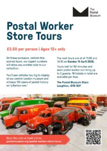 On 19th April the Postal Museum will be opening their museum store in a special event exclusively for ex and current Postal Workers and their guests. The museum store is in Debden and houses objects that are too large to be held at the main museum site and includes vehicles and 150 years of history on pillarbox row.