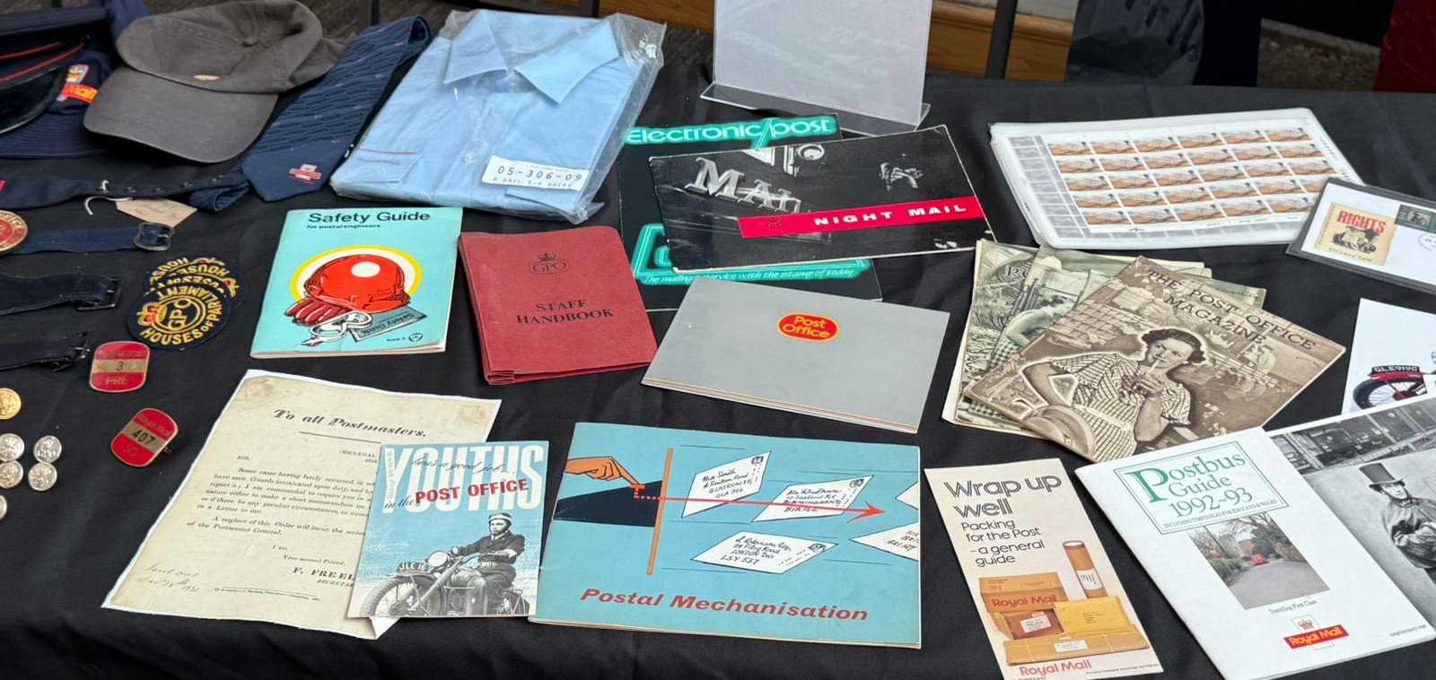 On the morning of the visit, Terry picked up Andrea from the train station and she was soon setting up the table display and putting up photos of some of the old Royal Mail buildings that have been knocked down. It was not long before people were visiting and asking questions. Many of our long serving colleagues were soon reminiscing about the photos of old workplaces and vehicles they used, and old badges and armbands, caps, hats, jacket buttons and other uniform items been of particular interest. The people visiting, ranged from having worked for Royal Mail for a few months right up to John and Steve who both have worked for the business for almost 49 years (John joined a week before Steve). Both started as messenger boys and recognised many of the uniform items, sharing their experiences and favourites with Andrea. The visit was well received with lots of interest shown and talk of planning visits from many.